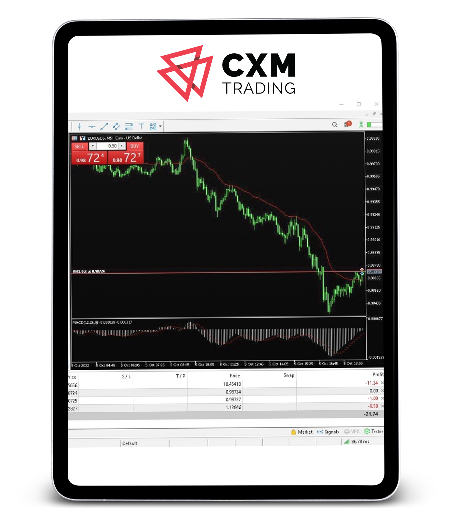 MetaTrader 5交易平台提供20多个技术指标和12个时间框架。该平台还包括一个内置的策略测试器,以及互动图表。